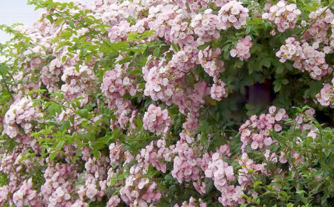 ブラッシュ ランブラー Blush Rambler 作出:1903年/イギリス 樹形:特大・半横張性シュラブ(つる扱いが妥当) 花期:遅咲・一季 花径:小輪 交配:Crimson Rambler × The Garla...