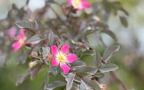 サンショウバラ Rosa hirtula 作出:原種 樹形:シュラブ(扱いによっては中低木の庭木) 花期:極早咲・一季 花径:中輪 交配:富士・箱根地方に自生 バラというより、晩春を彩る花木のひとつとして見...