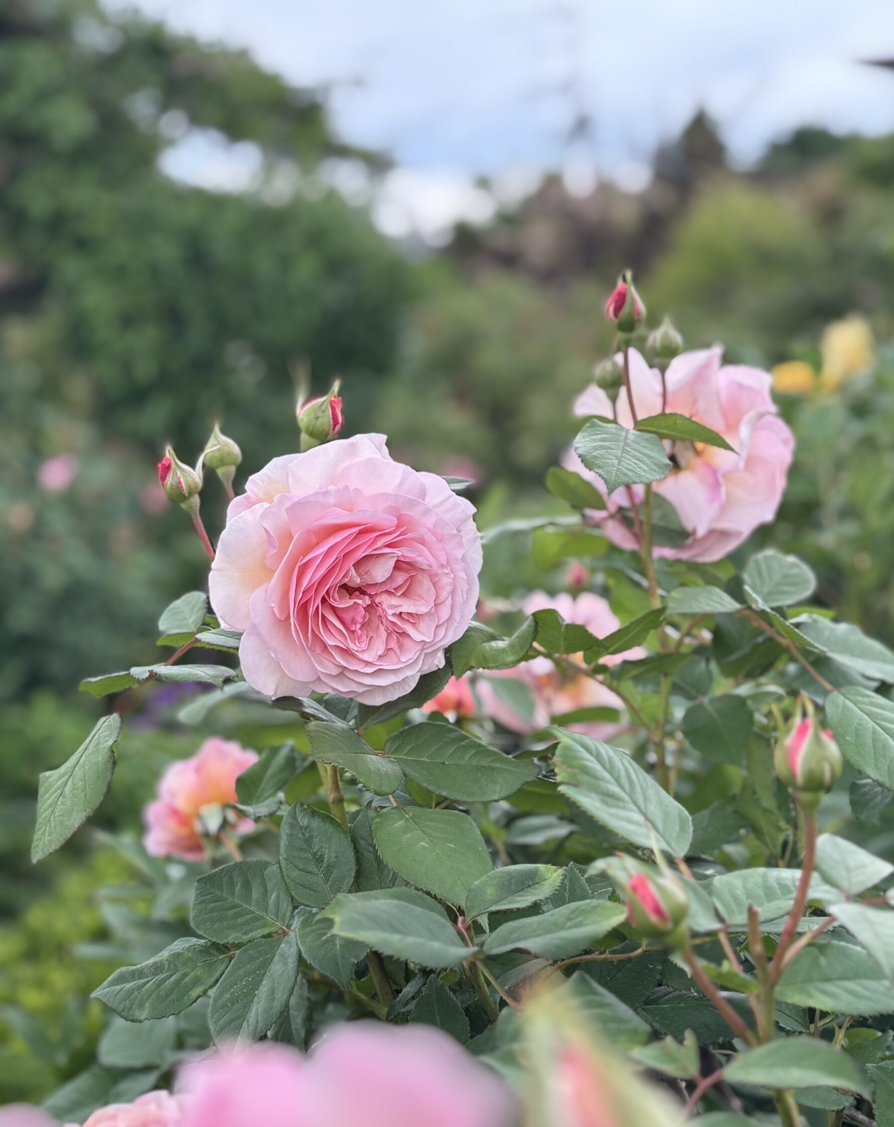 カメラの腕がどんなにヘボでも、絶対美人に撮れるバラ。一株あるだけでガーデンがぐ~んと豊満になります。樹形もよく整いますし、棘も少なめ。重たげに俯いて咲く感じも大変優美。