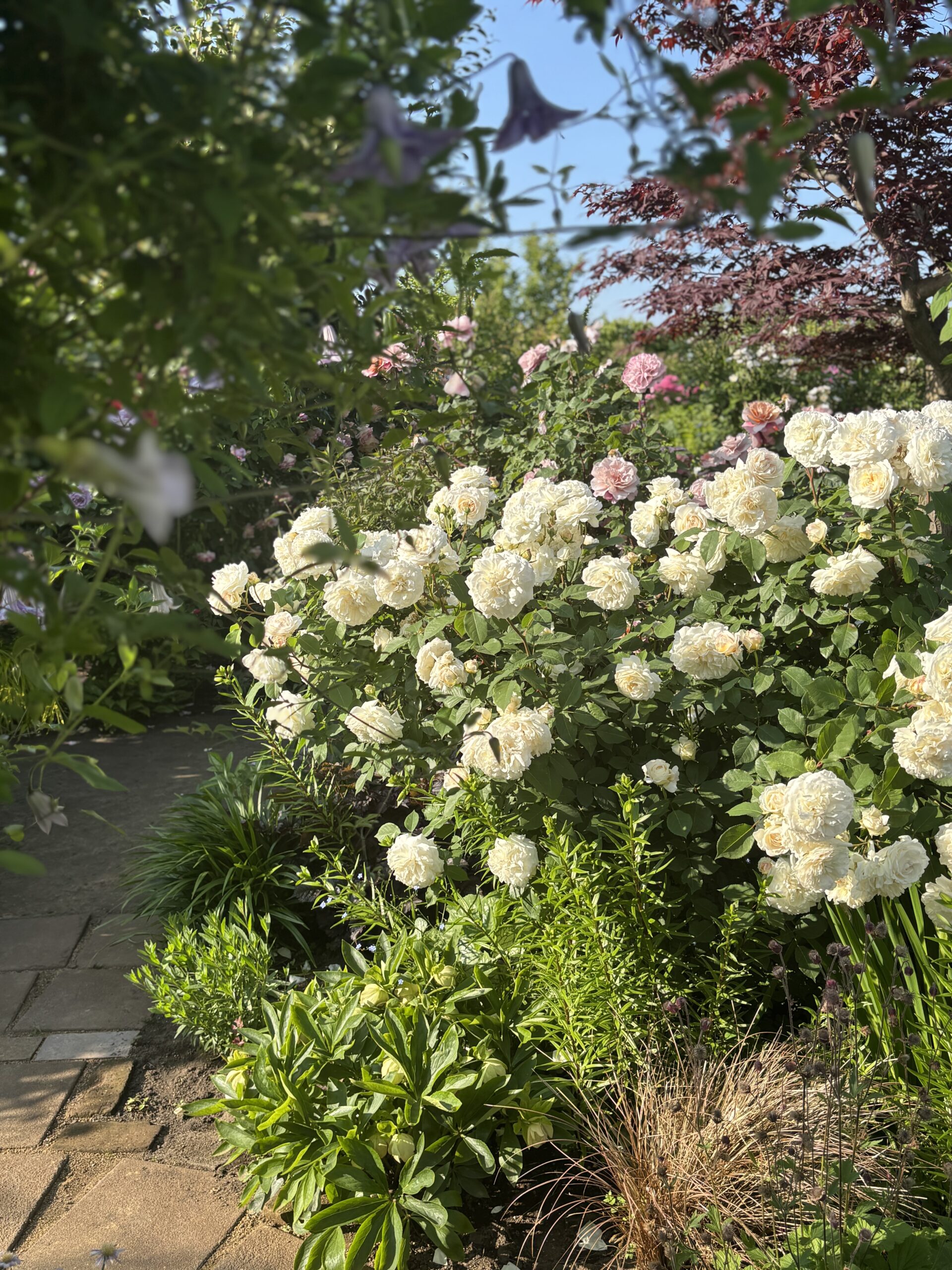 ついでに⇧のデッキから眺めおろすと⇩な感じ♪ 画面中央の白バラがそう。