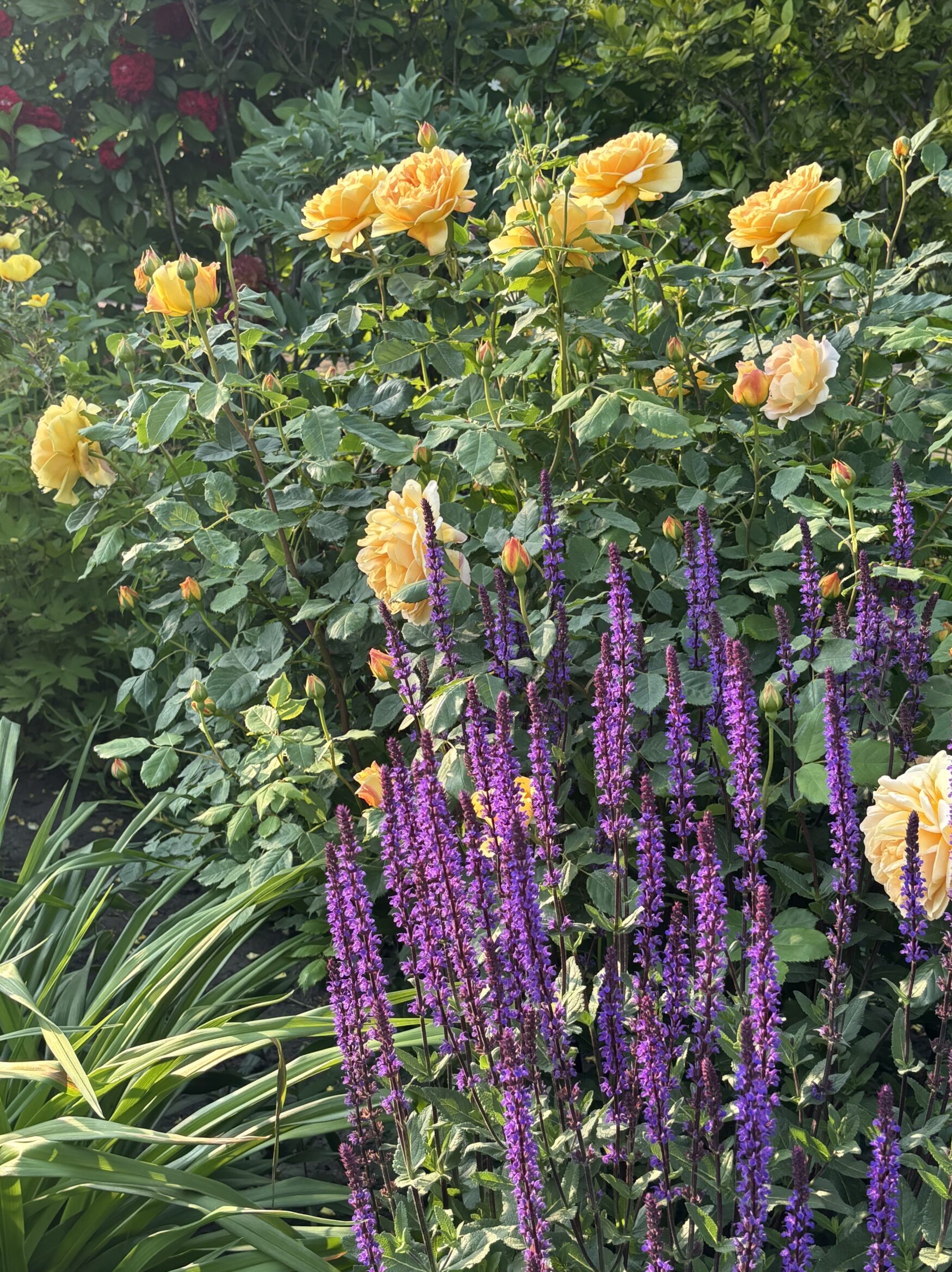 人が花一輪を愛でる時、大抵の場合は上から目線。だからバラは上向きに咲いてくれたほうが人にとっては都合がいい。けれどガーデン内で、ゆったり優雅に咲き初めたイングリッシュローズがやがて重たげに俯く様は格別。ハッキリ言って大好物です♪