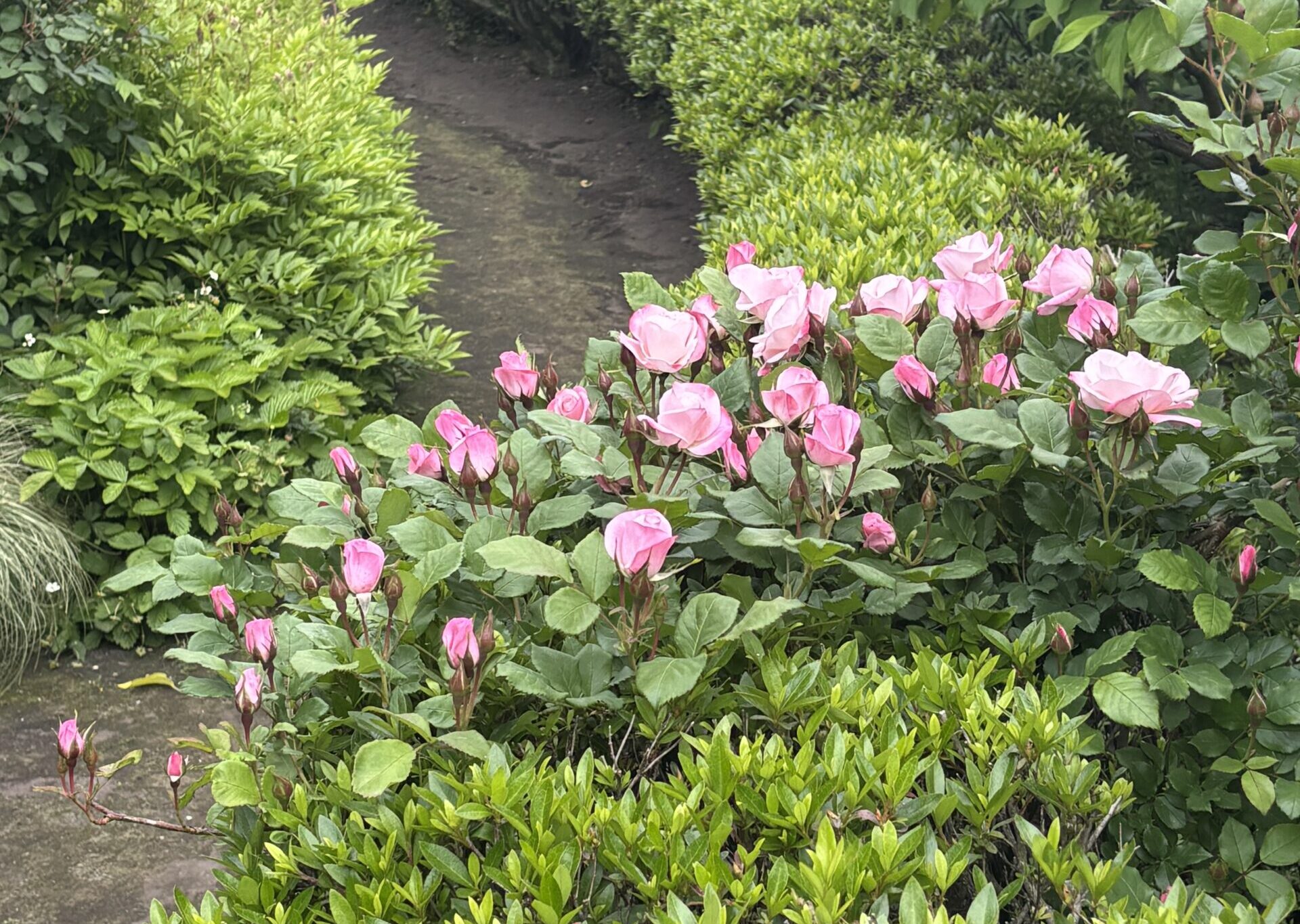 その年の6月下旬。当庭がバラ期後半の頃。本来の花期よりは多少遅れたとはいえ、あの状態からこれだけ咲いてくれれば御の字です。元品種(ブッシュタイプ)が四季咲き、つまり新枝咲なので、大強剪定後のツルバラであってもおそらくいくらかは咲いてくれるだろうとは思ってましたが・・・やれやれ(笑)。ちなみに花がギッシリ咲いてるあたりで樹高7~80㎝くらいかな。