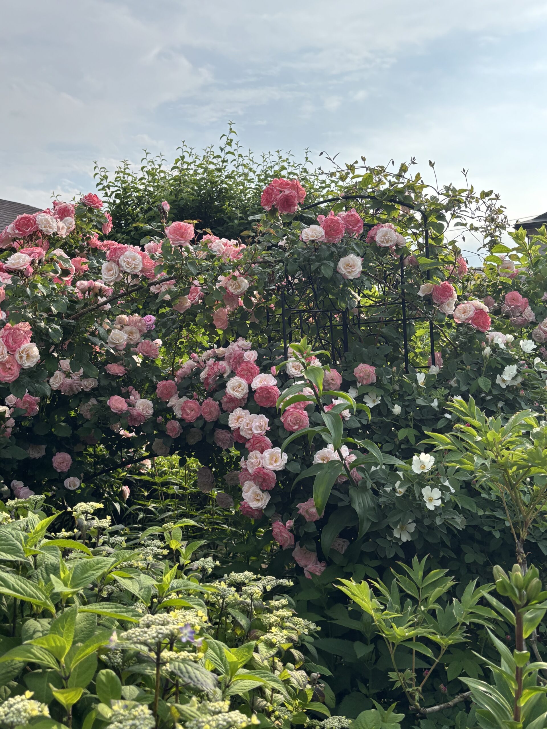 ってな訳でモノは試しにやってみた!というのが今のスタイル。 サイドに写ってるトレリスはソフトクリーム仕立ての頃モシャモシャしてたクレマ用。桜霞がまさかの欠番となった2022、いきなり行き所無くなって慌てて用意したもの。で、今度はそこに桜霞のつるを寄っかけてみた。