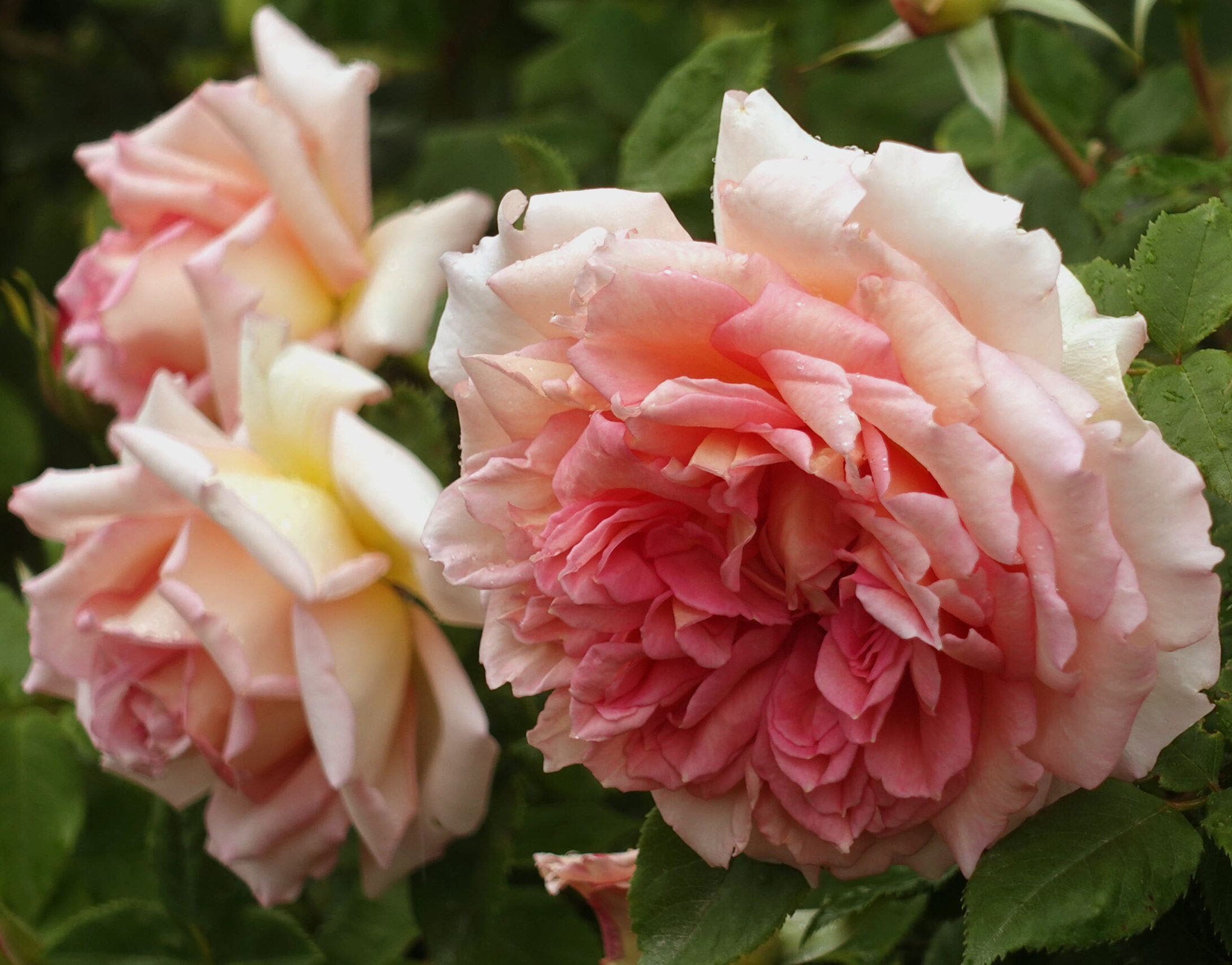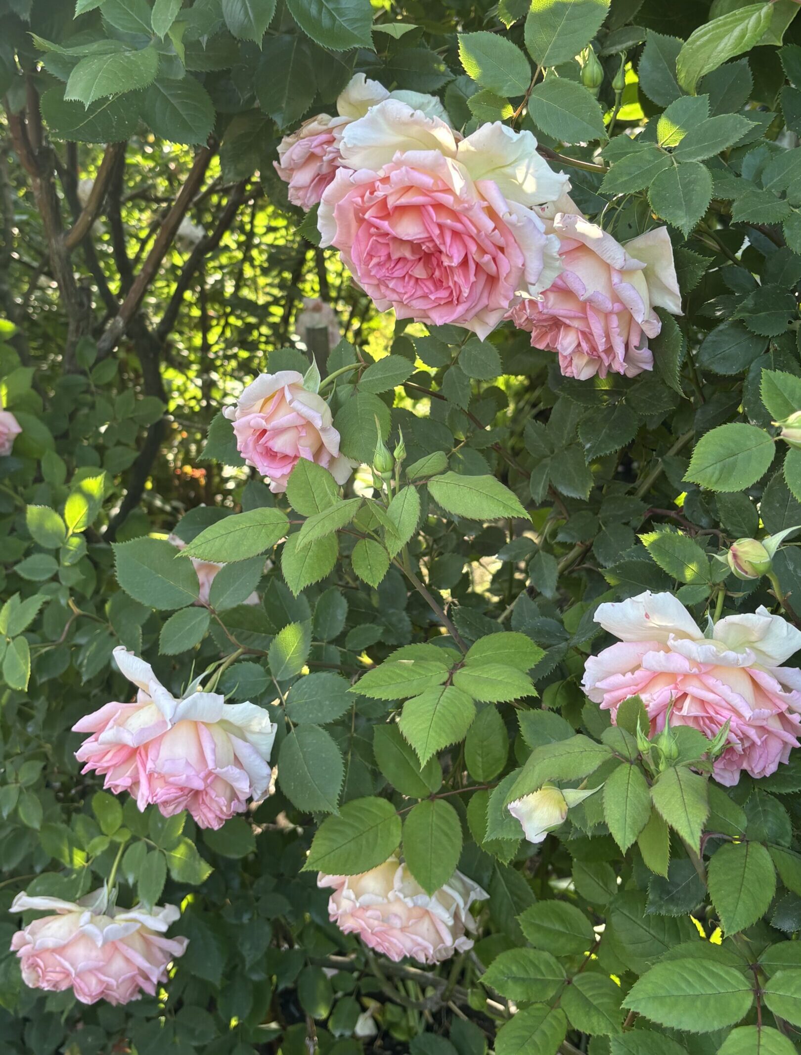 ⇧のクレマ ‘エトワールローズ’ はジャネットの枝を自力で掻い潜って好きに咲いてます。どっちもどっちな奔放さ。通りかかると「…お、そーきたか」って思います。