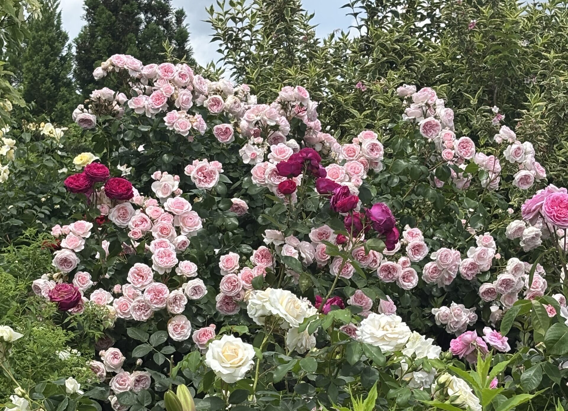 ムーンライト ⇩アンジェラ  みんな『ツルバラ』流通しているコルデスのバラですが、冬季剪定さえキッチリしとけば生育期にはサポートすらいらない組。大きな庭ではこういうバラこそ頼りになります。誘引するにしても・・・・『ツルバラ=自立出来ない』から誘引しなければならない・・・って訳じゃないのを知っておくと、いろいろ大きく違ってくると思います。少なくとも「このツルバラ、枝が剛直だから誘引するのすごく大変!全然思い通りにならない!」という労苦からは解放されるかと(笑)。