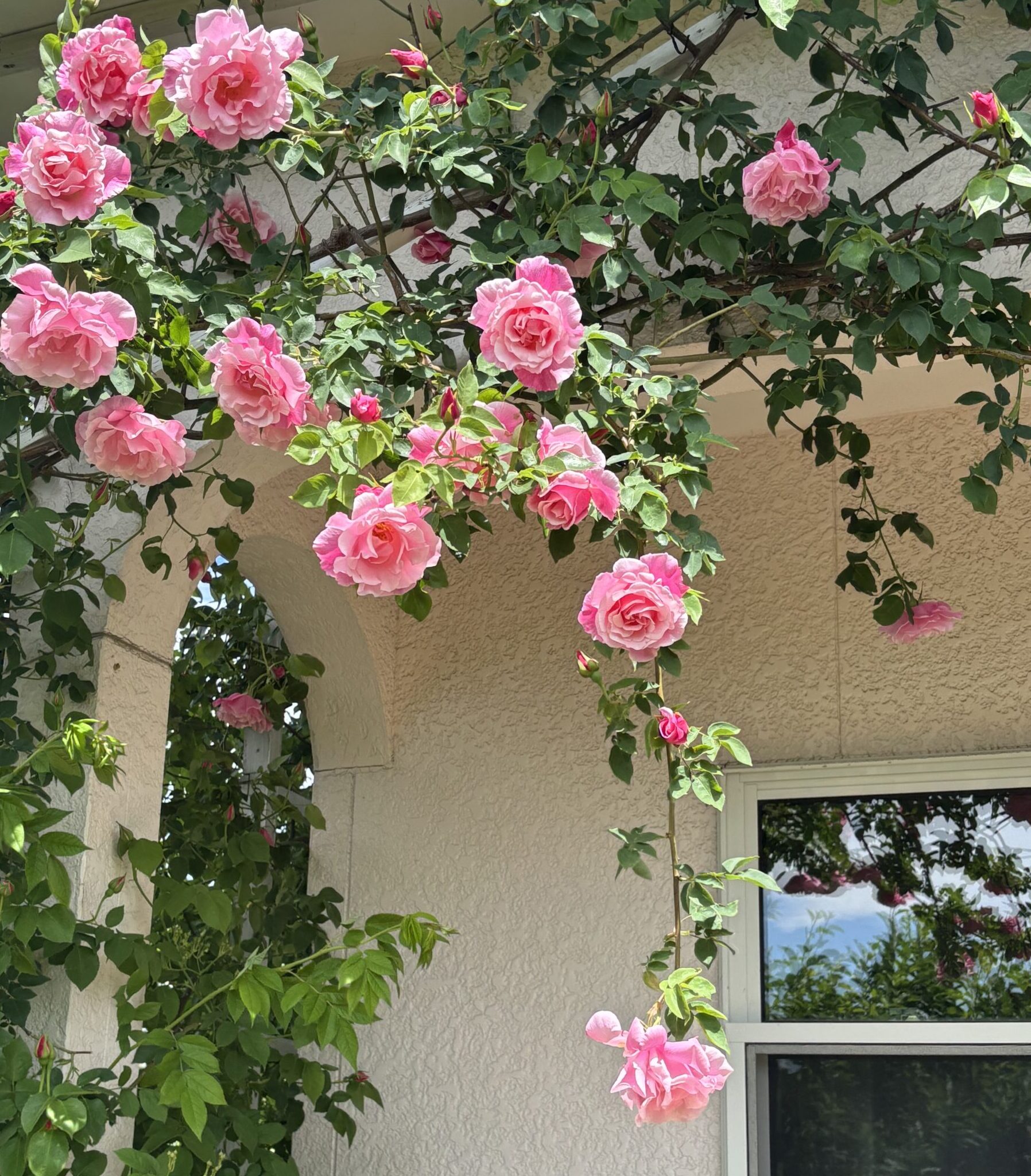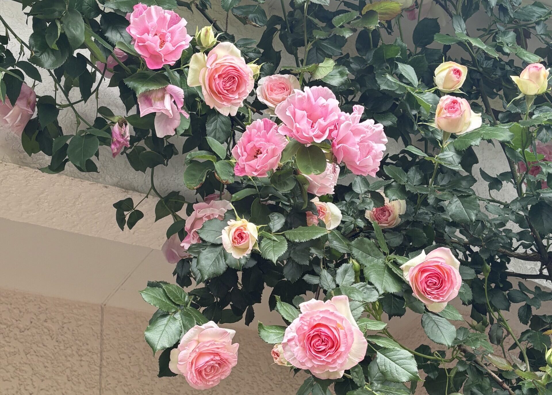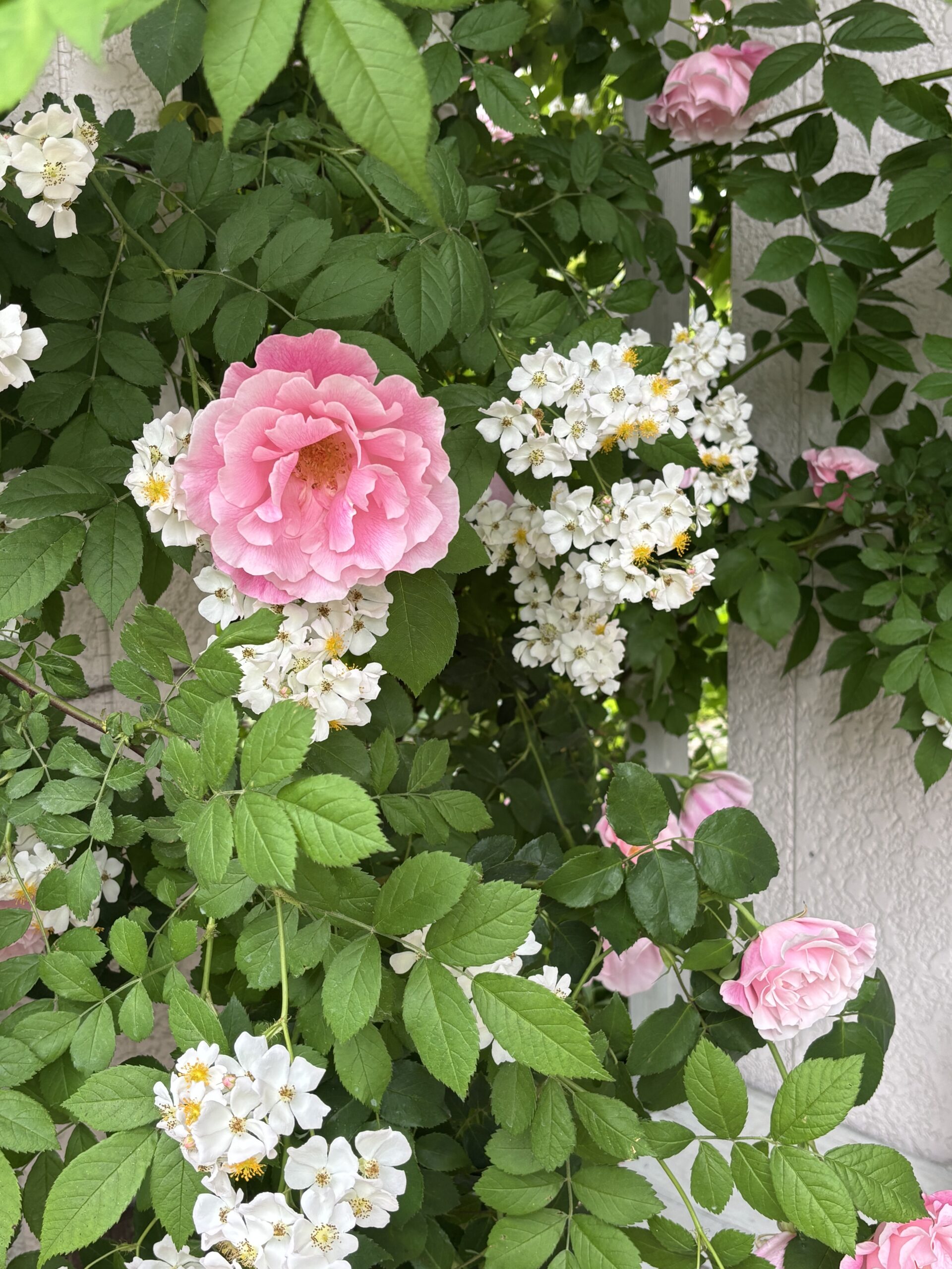 スパニッシュは親譲りの気品ある樹姿で、生育はおとなしく感じる程にゆったり。だけど自由奔放でエレガント。可能であれば、御本人の意思を出来るだけ尊重する感じで最低限の必要箇所だけを誘引してあげたほうが、この方の持ち味を最大限に生かせるんじゃないかと思います。