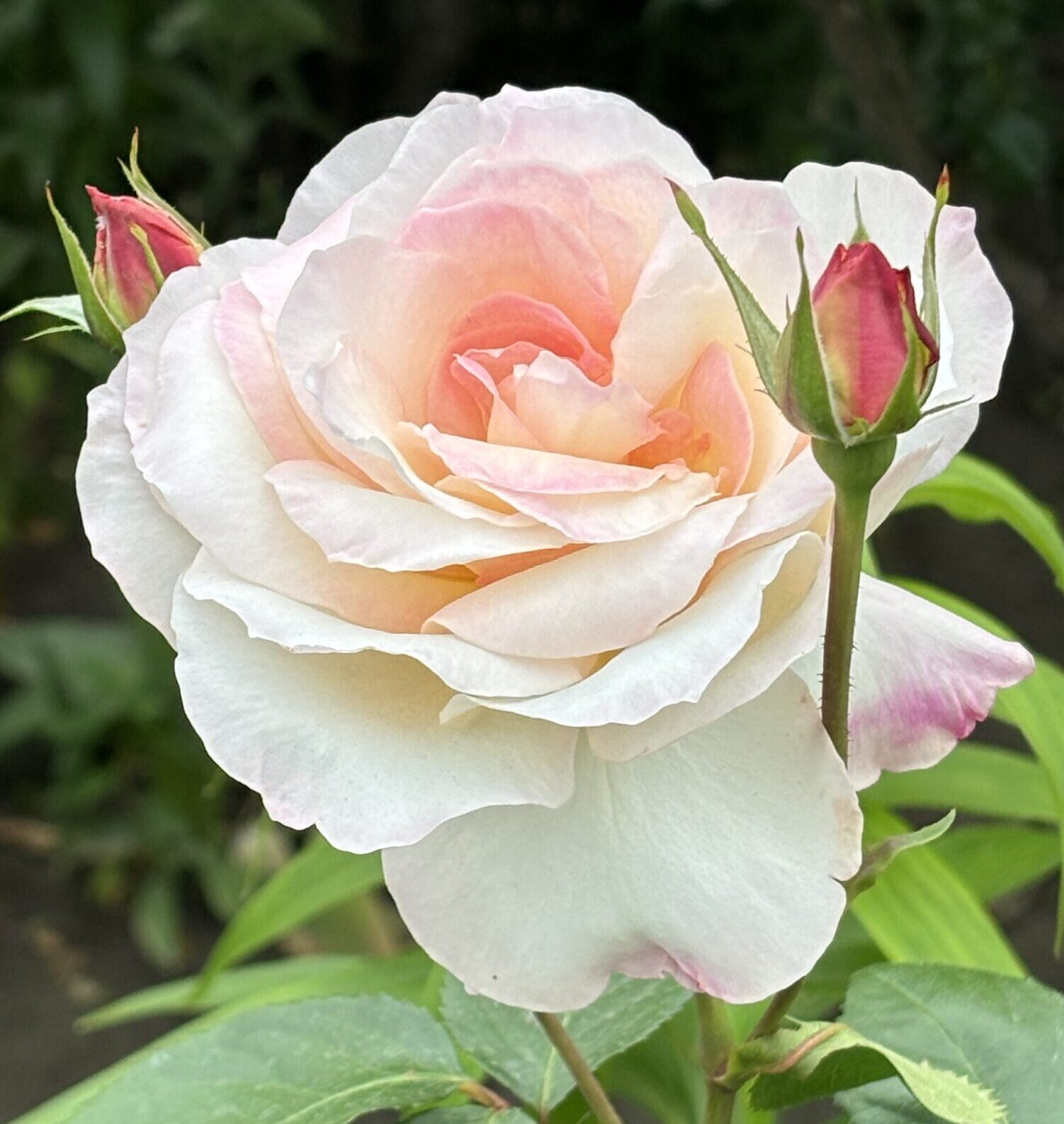 っと、あーーー、あともうひとつだけ。この方、ステムがすら~と長い分、開花期に雨に降られると花茎がかなり撓みますね。⇧の画像がそう。某バラのように元からポキッと折れる程ではありませんが(いや折れてるのもあったな)それに気づいてしまってからは、雨が降る度ちとハラハラしてます。まあ、優美な枝振りのバラにはありがちな事案でしょうし、株の成長につれて「そこがまたいい!」とか言い出す時が来るのかもしれませんから、もう暫く観察してみようと思ってますが。
