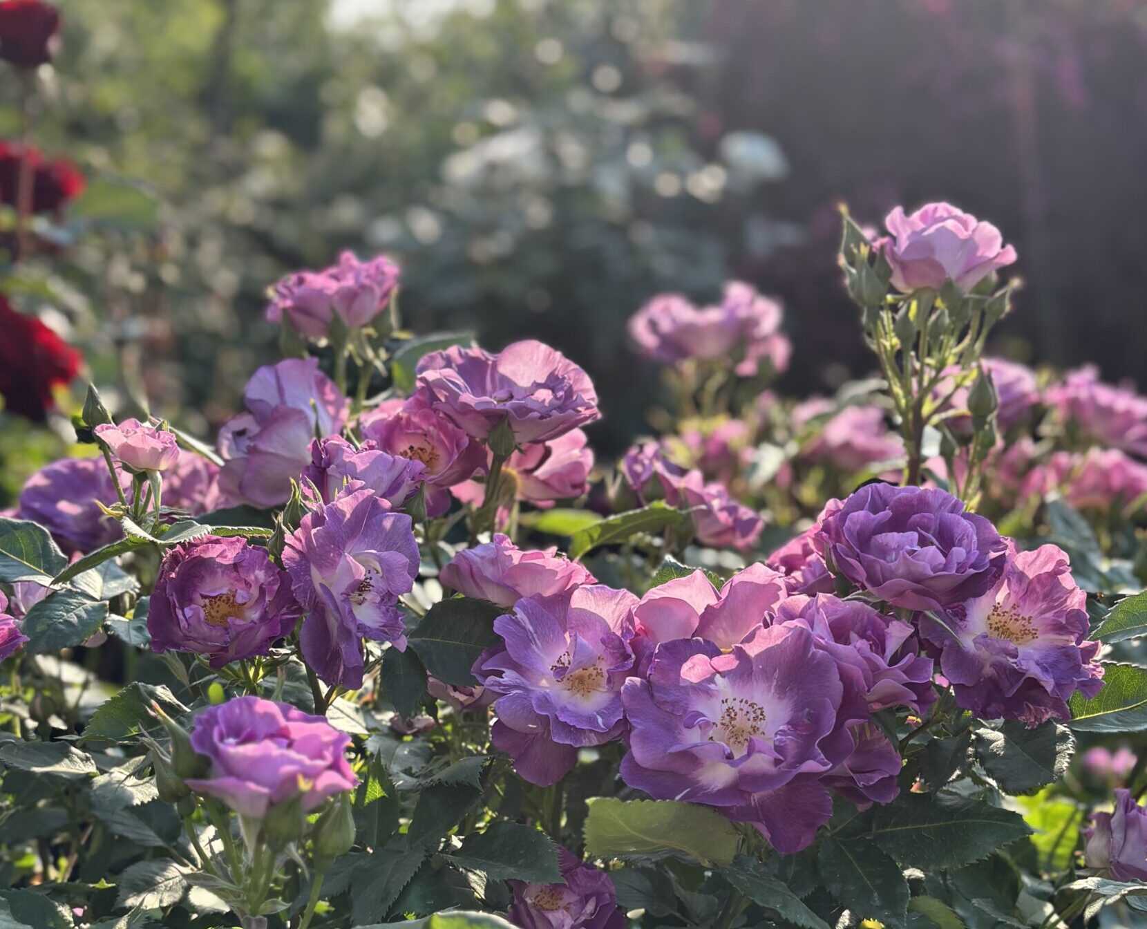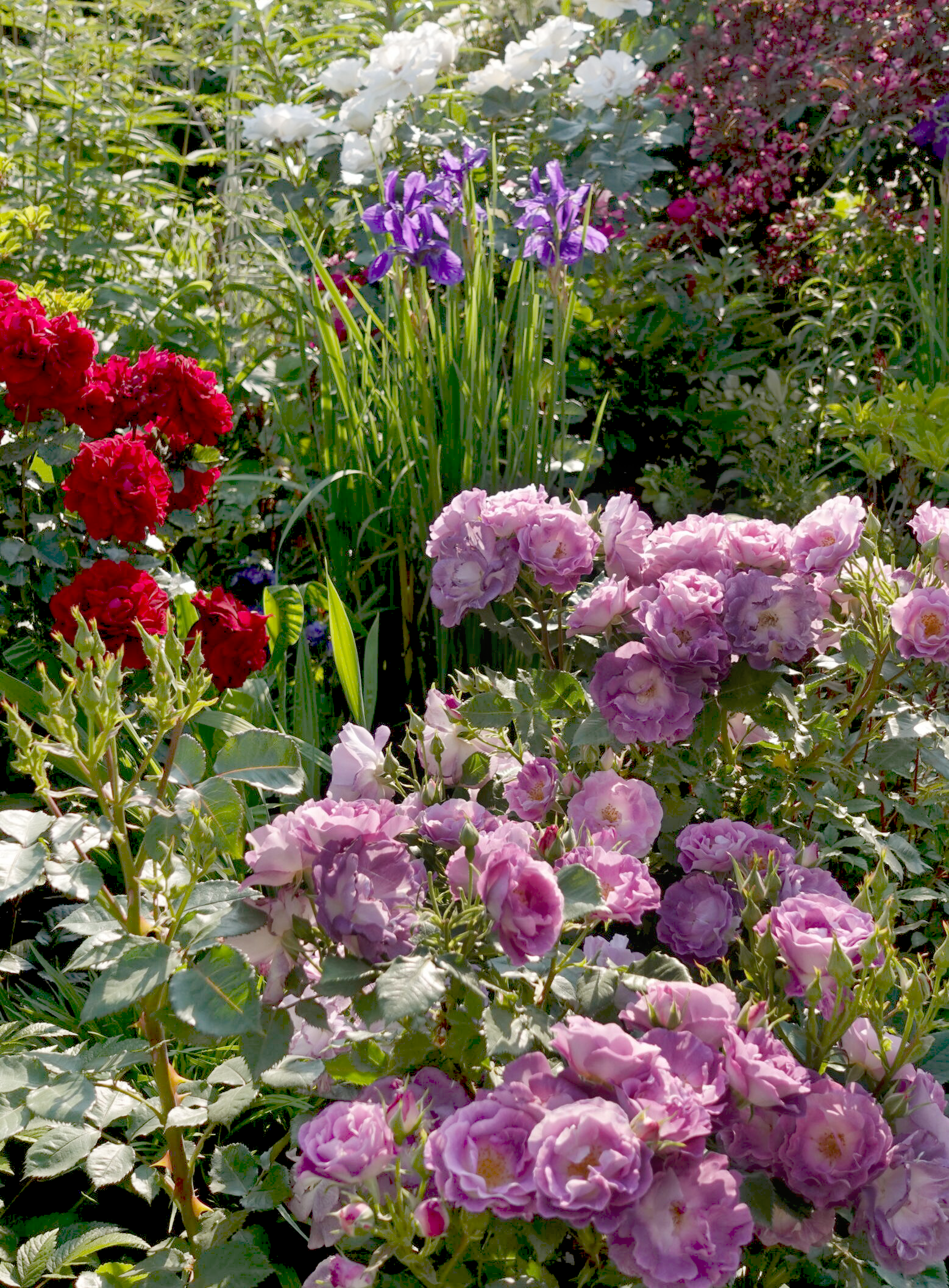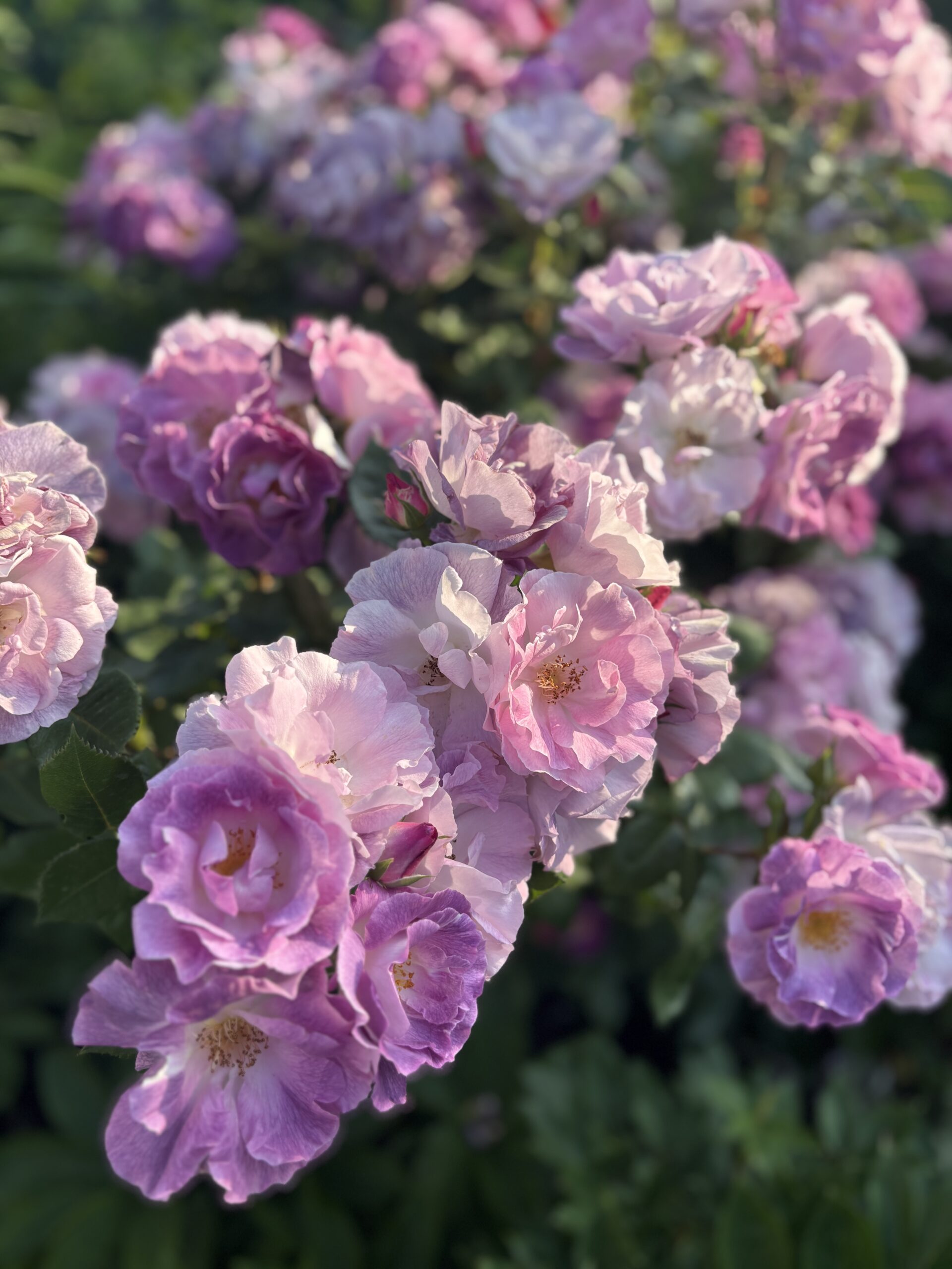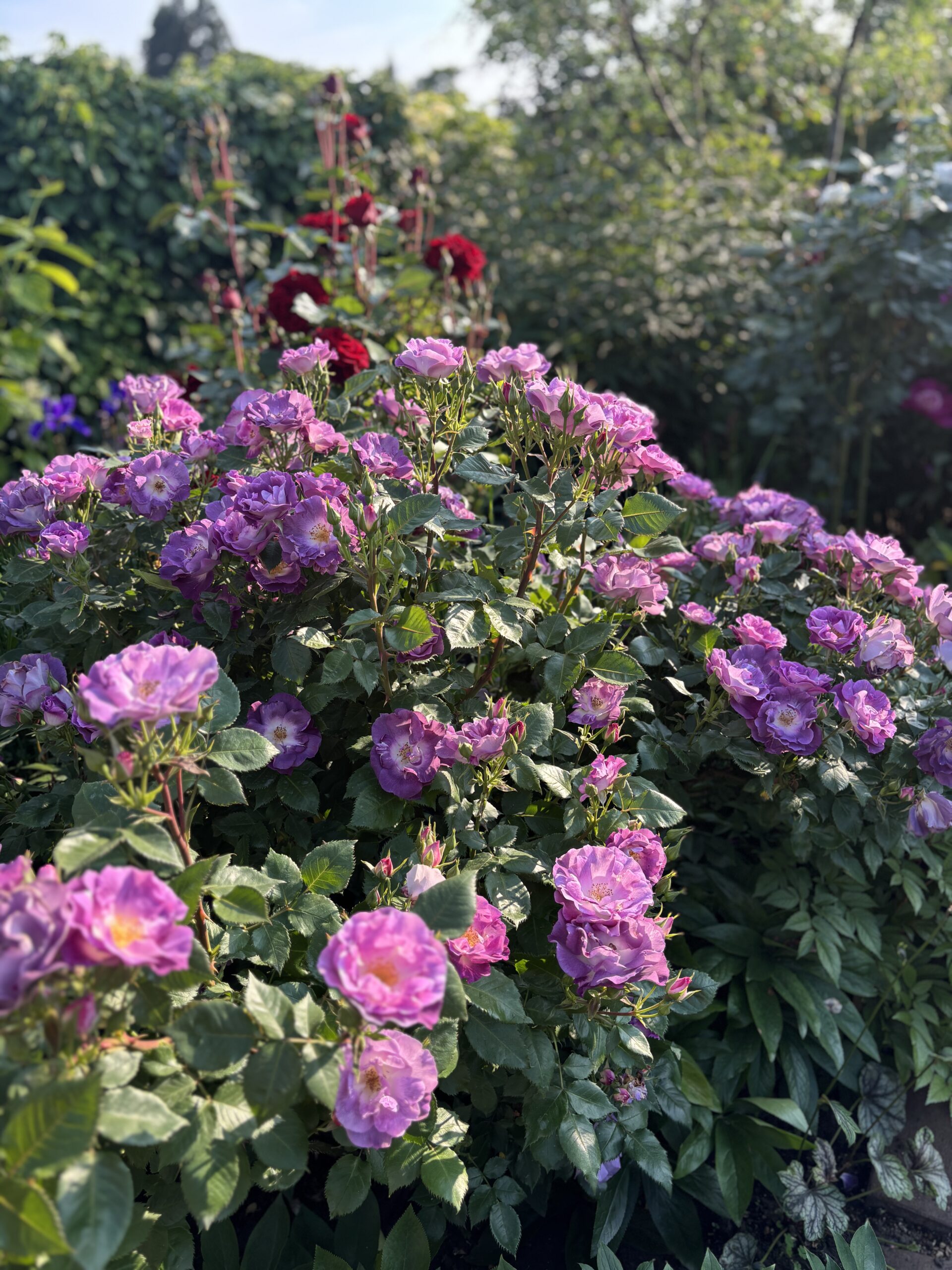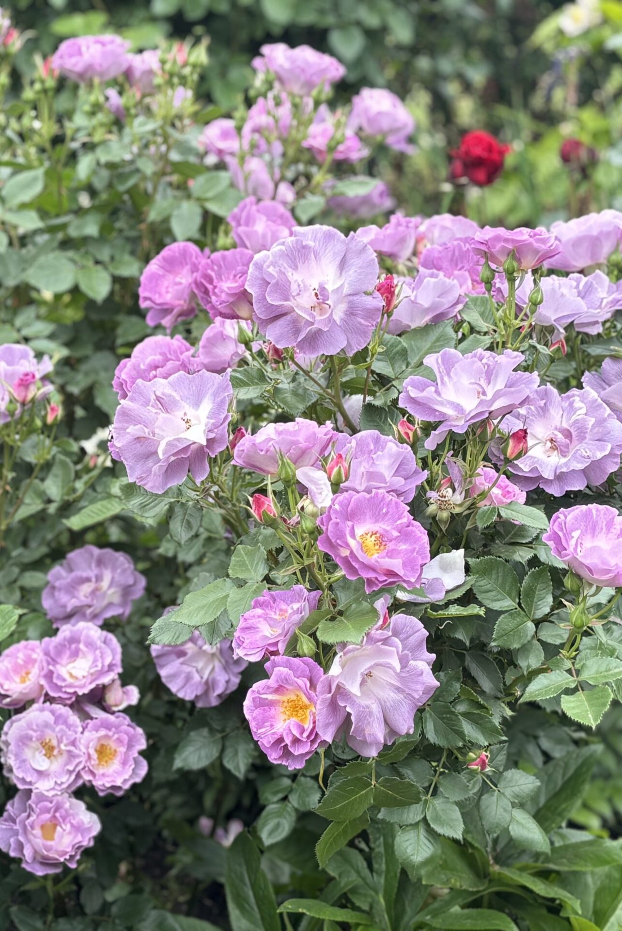 比較的早咲きなんですが、花数が多いのでその分花期が長いです。標準的な中咲バラの咲く前から咲き終わりまで。もしくは⇧アヤメや芍薬の頃に咲き始め、咲き終わるのは山アジサイの頃⇩ そこんところはラプソティと同じですね