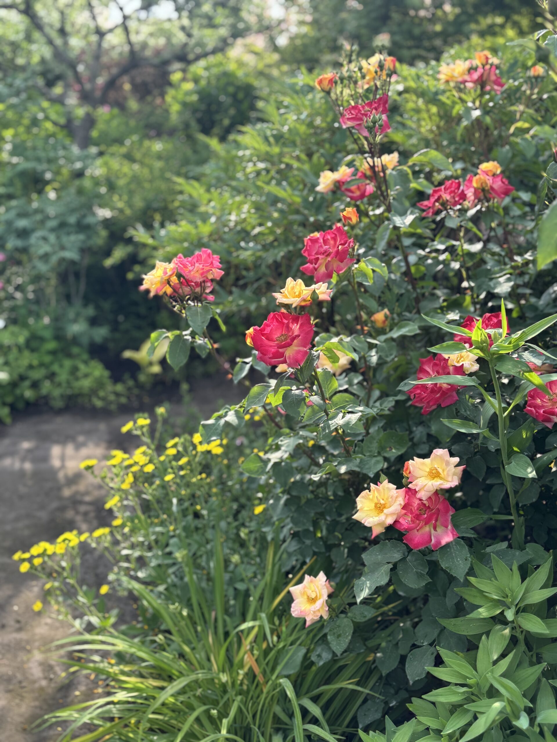 咲き始めから咲き終わりまでの色移りが楽しい品種。小さめの軽やかな花が色とりどりに咲き乱れる光景はホントお祭りみたい。四季咲き性も強く、ショッチュウ咲いてるイメージ。