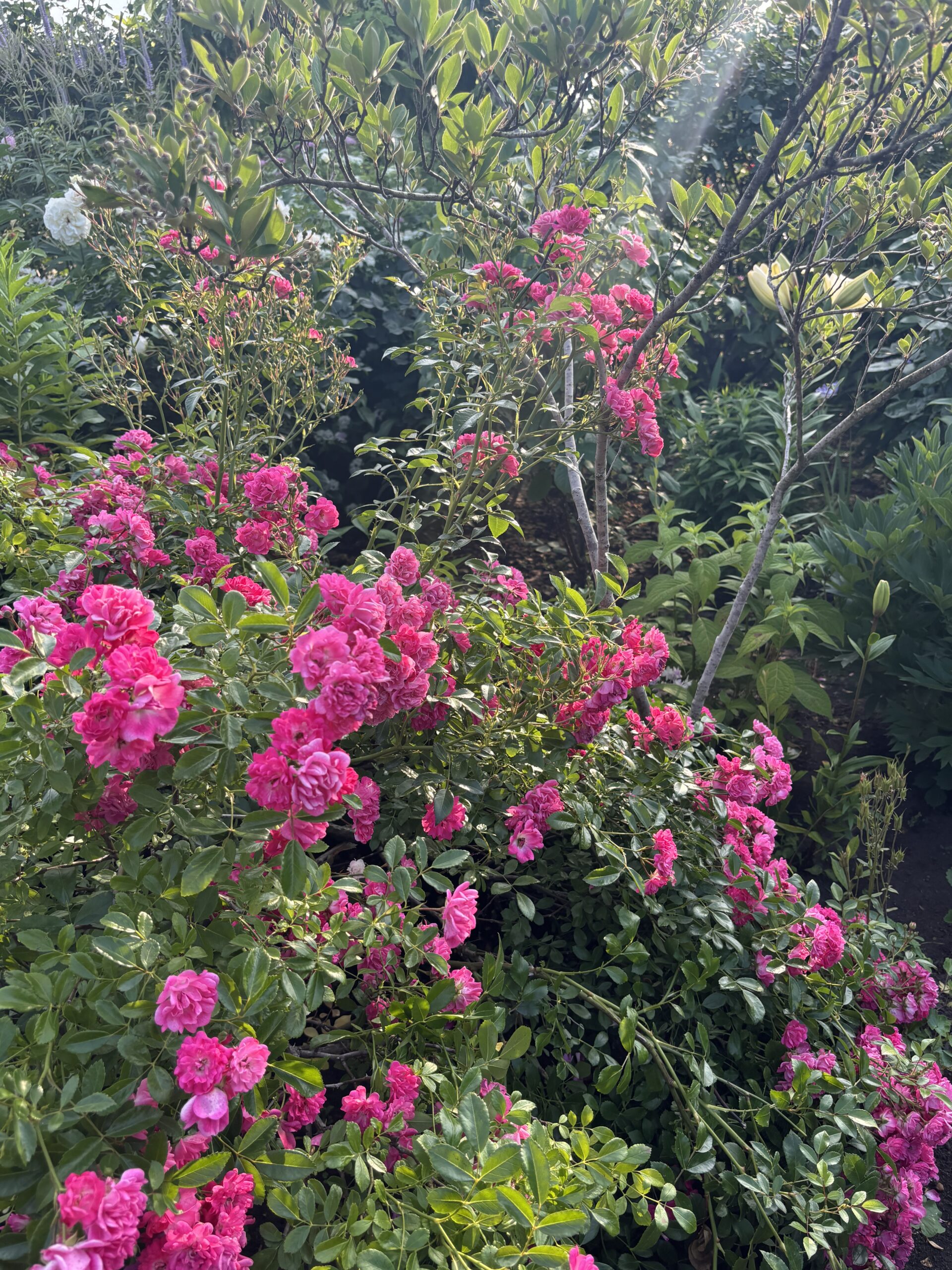 うちはあえての夏剪定をしないこともあり勿論パッと見の花数は少なくなりますが、基本繰り返し咲き性は強いので、特に秋頃になるとずぅ~~~~っとチラチラ咲き続けてます。花数が少ないだけに一番花時のように倒れ伏さなくなるので、これはこれでいい。画像ではちょっと伝わりづらいだろうけど(腕っ!)