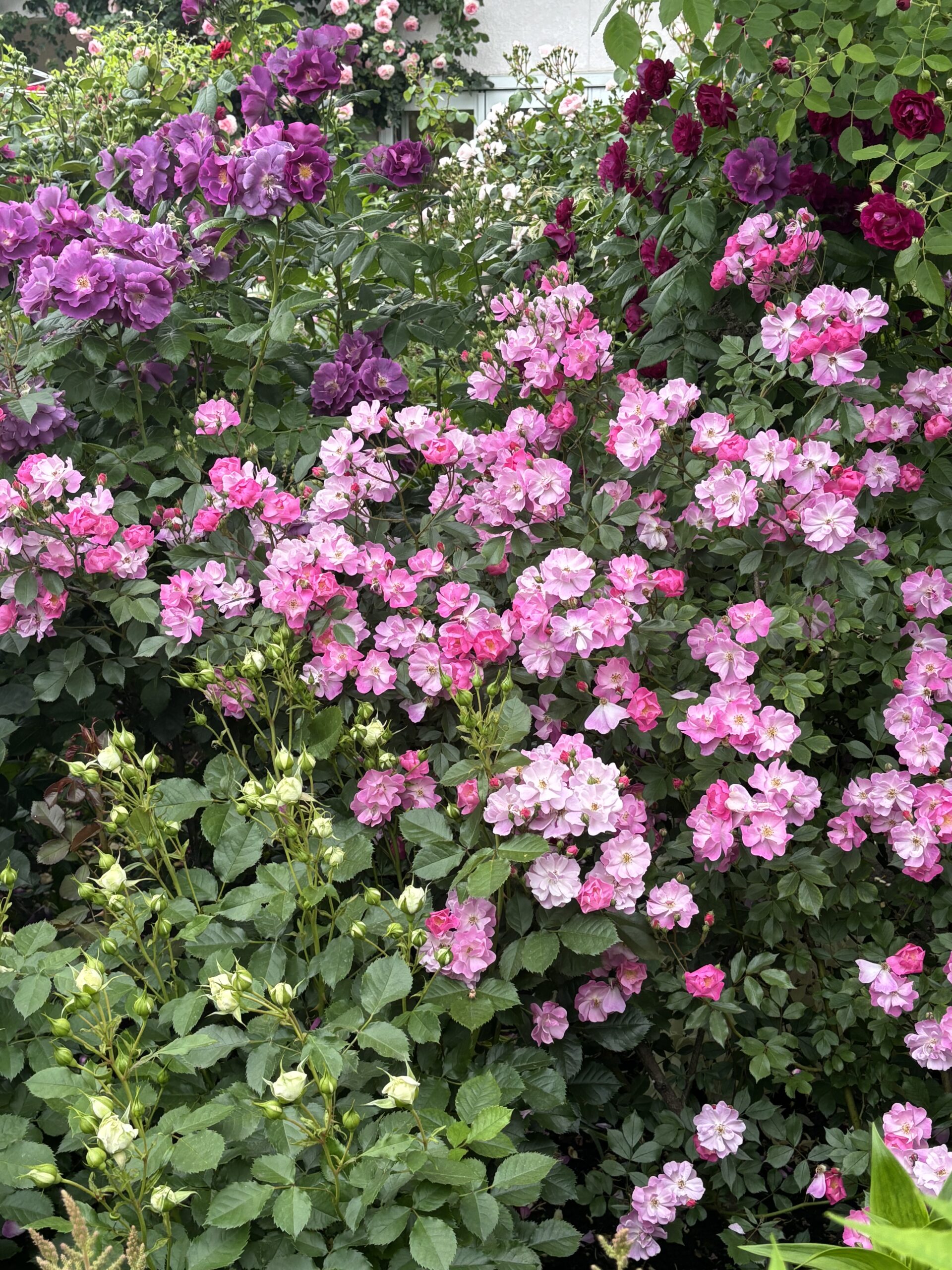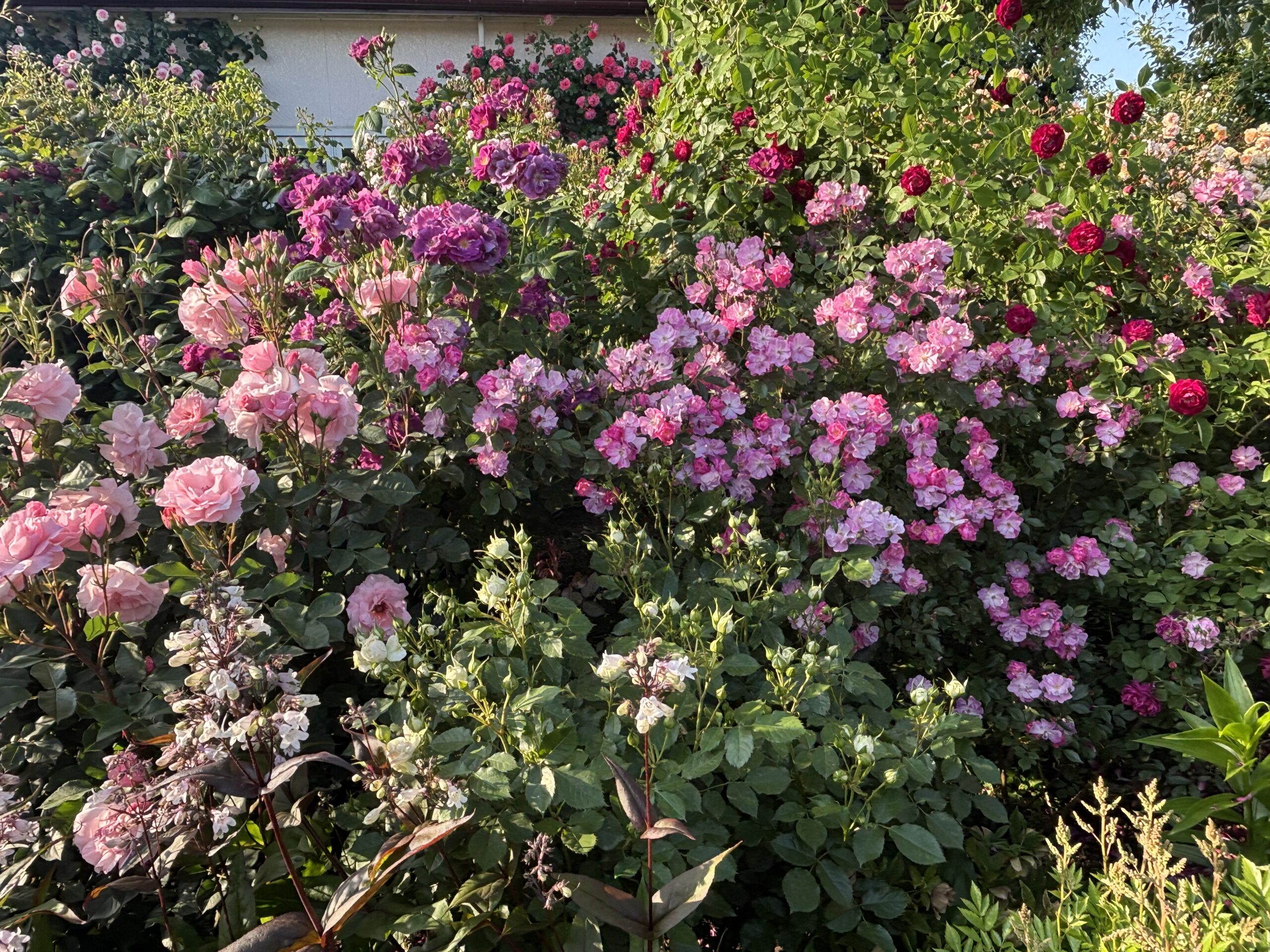 樹は標準的なサイズのシュラブで、冬季剪定さえしとけばこんもり綺麗にまとまるタイプですし、花は・・・・うん、百聞一見に如かずww 以下、大量画像を惜しみなくど~ぞ~♪ ちなみにコラボしてる他品種バラについてはガーデンマップで御確認を。エリアAおよびその周辺エリアです~。