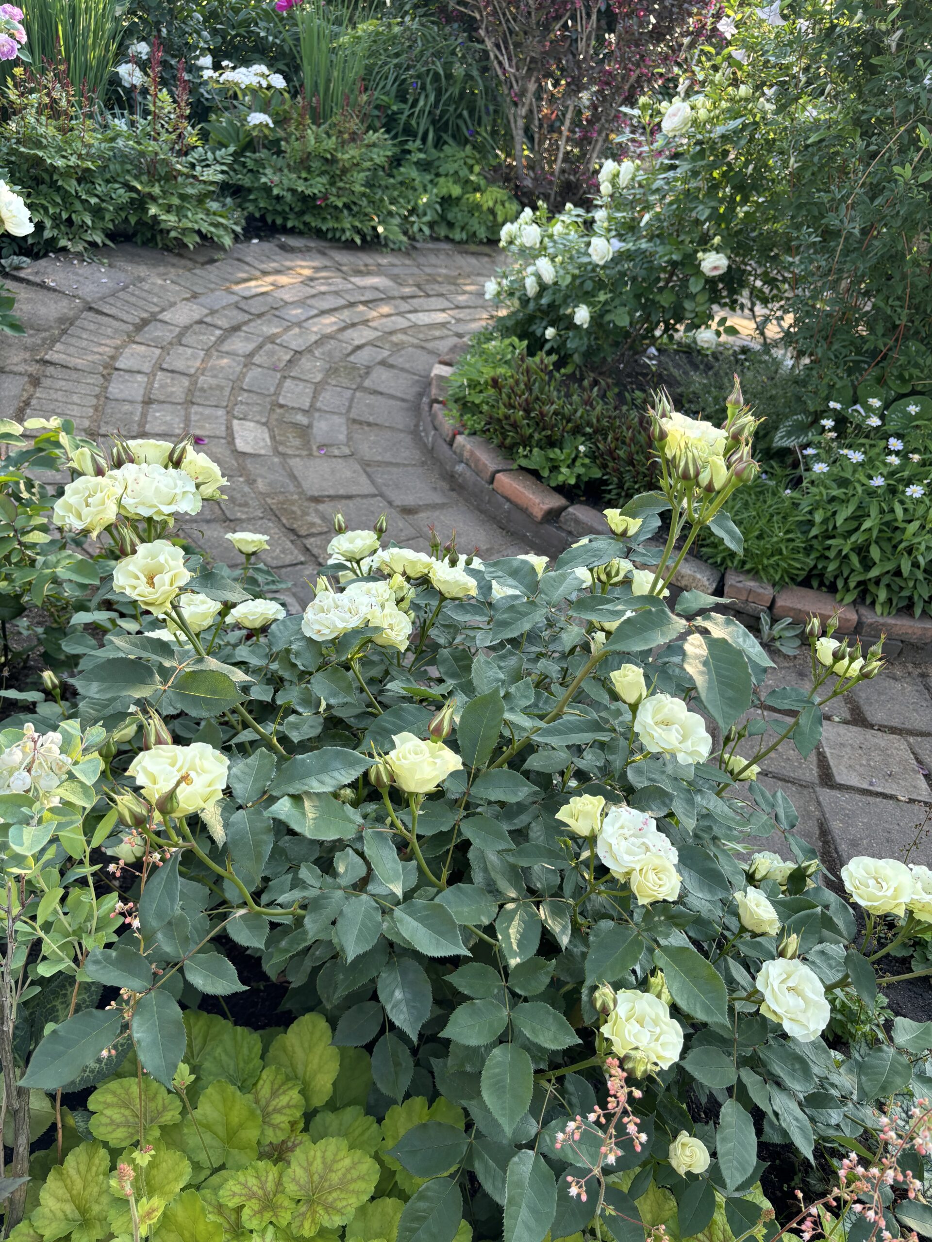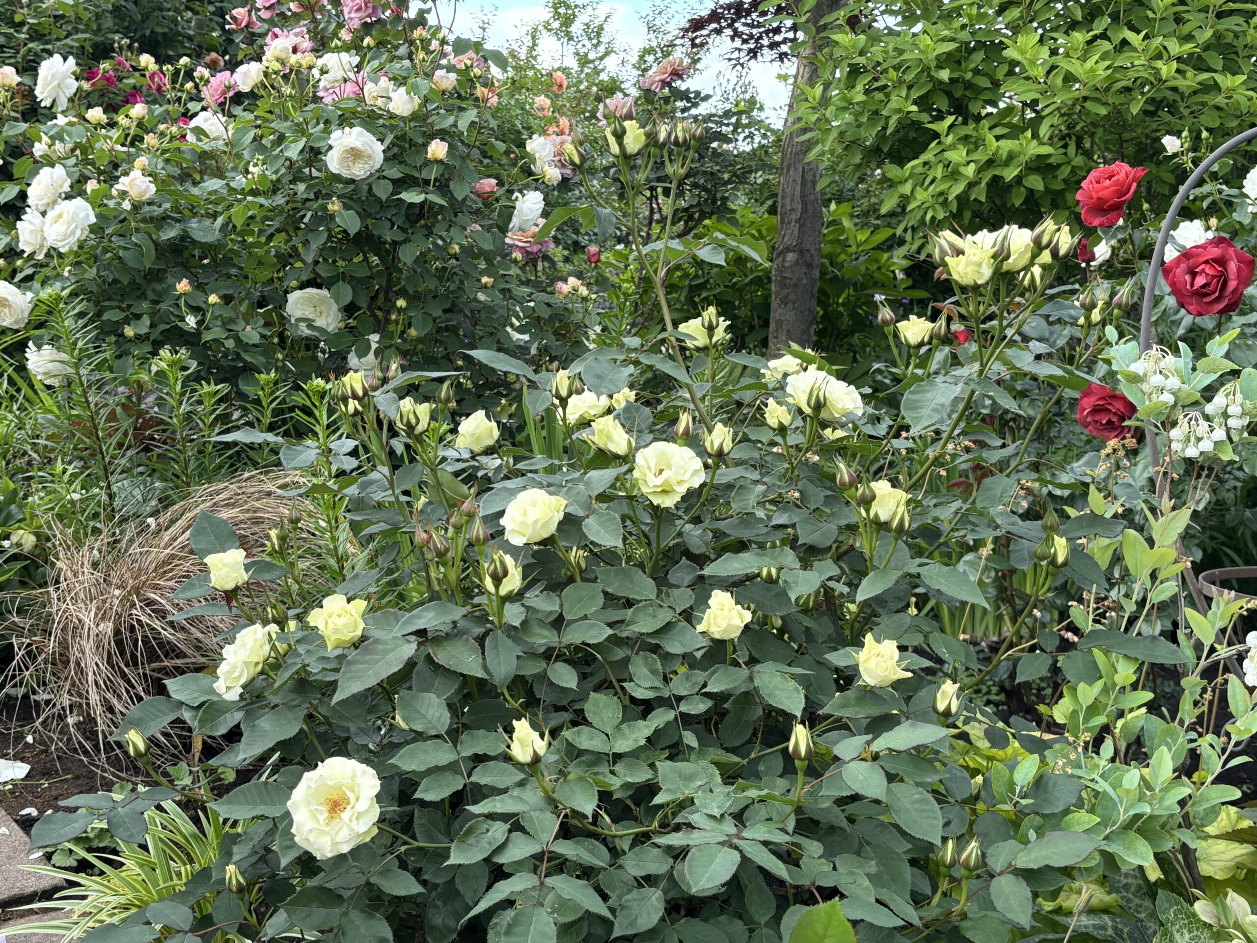 花は小さいですが案外目を惹く色。花保ちがやたらよいのが特徴。シーズン中ずーっとこのまんまなイメージ。勿論長く雨に当たると赤斑出ますし、花芯が黒くなるので「終わったな…」感はそれなりに出ますが、散って散らからないのでその点も助かります。