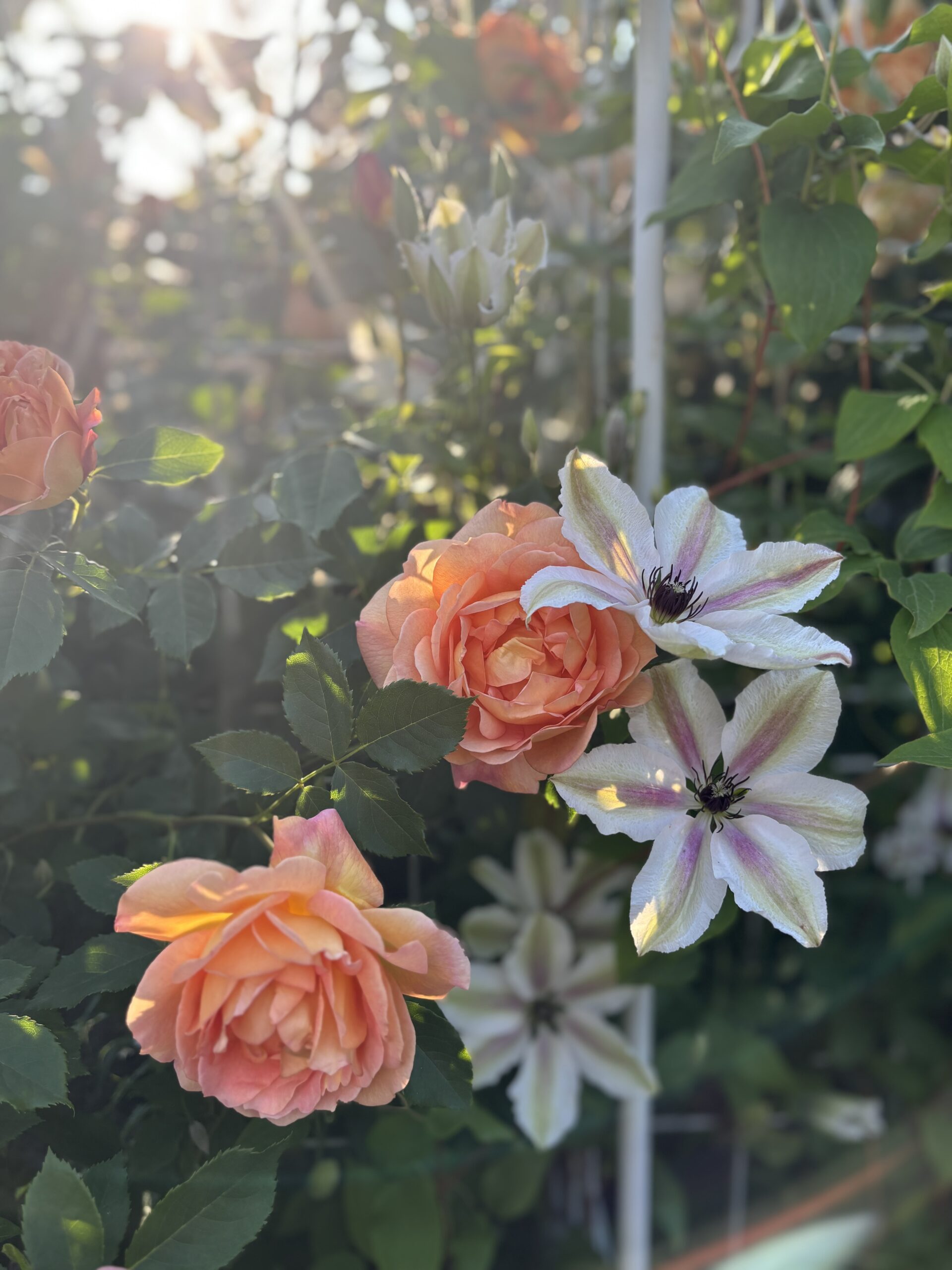 補足として⇧レディーのうなじ( ´艸`) 枝振りのしなやかさが伝わるかな~と思って。棘も少ないですよね。横張ぎみですが、枝のまとまりがいいので、さほど気になりません。何気に挟まってる(寄っかかってる?)クレマは絡まない ‘デュランティ’