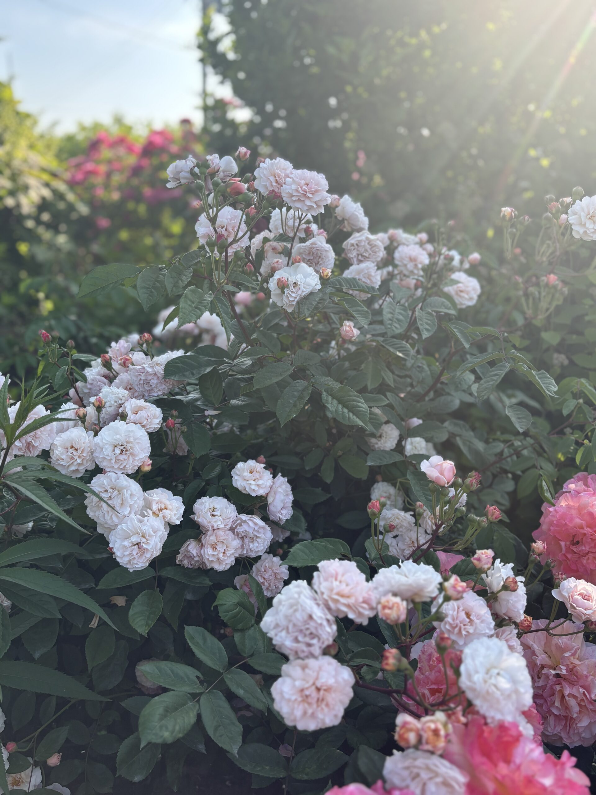普通(あくまで当庭での普通ですが)こういう房咲きで大量に咲くタイプのバラは、ピークをすぎた辺りで一旦ホウキで叩けばそれなりにリセット出来るんですが(そうすると枯れた分の花弁が散って見た目結構『まだイケる!』感じになる)この品種に限ってはそういう『とりあえず』的な手法がまったく利かない。手で摘むしかない。房の殆どが咲き終われば房ごと切っちゃえばいいけど、それまでは只々ひたすらチマチマチマチマチマチマチマチマチマチマ。。。