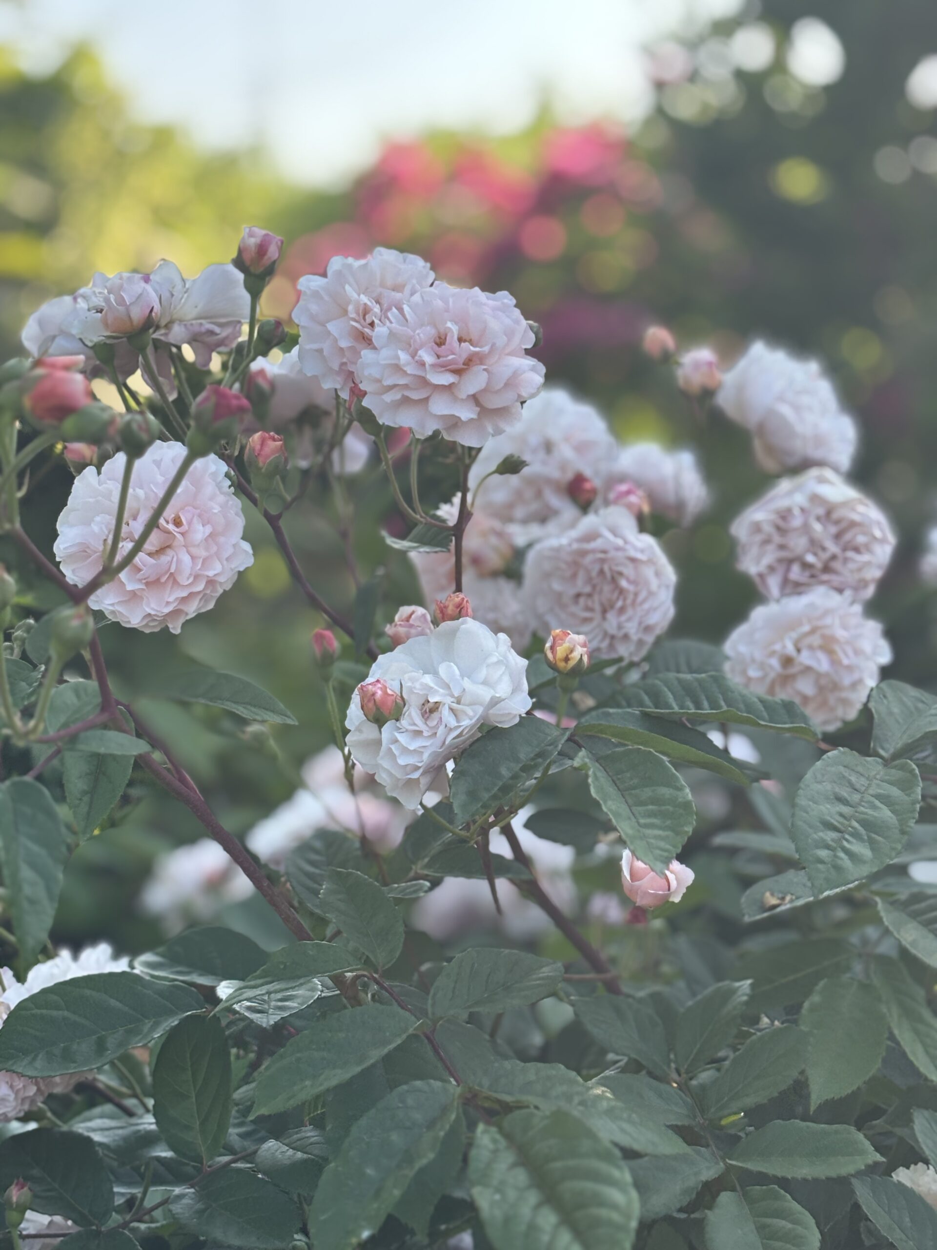当地の6月は平均気温20℃くらい(思いっきりザックリで。夜間は10℃以下になることも)なんですけれども、コーネリアがうちでこの色に咲いた時というのは、5月下旬から開花2,3日前にかけてお日さまこそ出ていたもののケッコー肌寒い日が続いておりました。で、ちょっと気になって調べてみたところ、ロンドンの6月(バラ開花期)の平均気温は16℃。嗚呼成程ねーーー、って感じですよね。・・・ところが、ですよ。この話にはまだ続きがありまして。このコーネリア、今シーズンはこのままロンドン色で咲き進むかと思いきや、たった一日ではありますが間違えたように突如の30℃超えを記録した翌日。まぁなんということでしょう!? ⇩の通り、例年通りの色に戻っていたのでした。。。