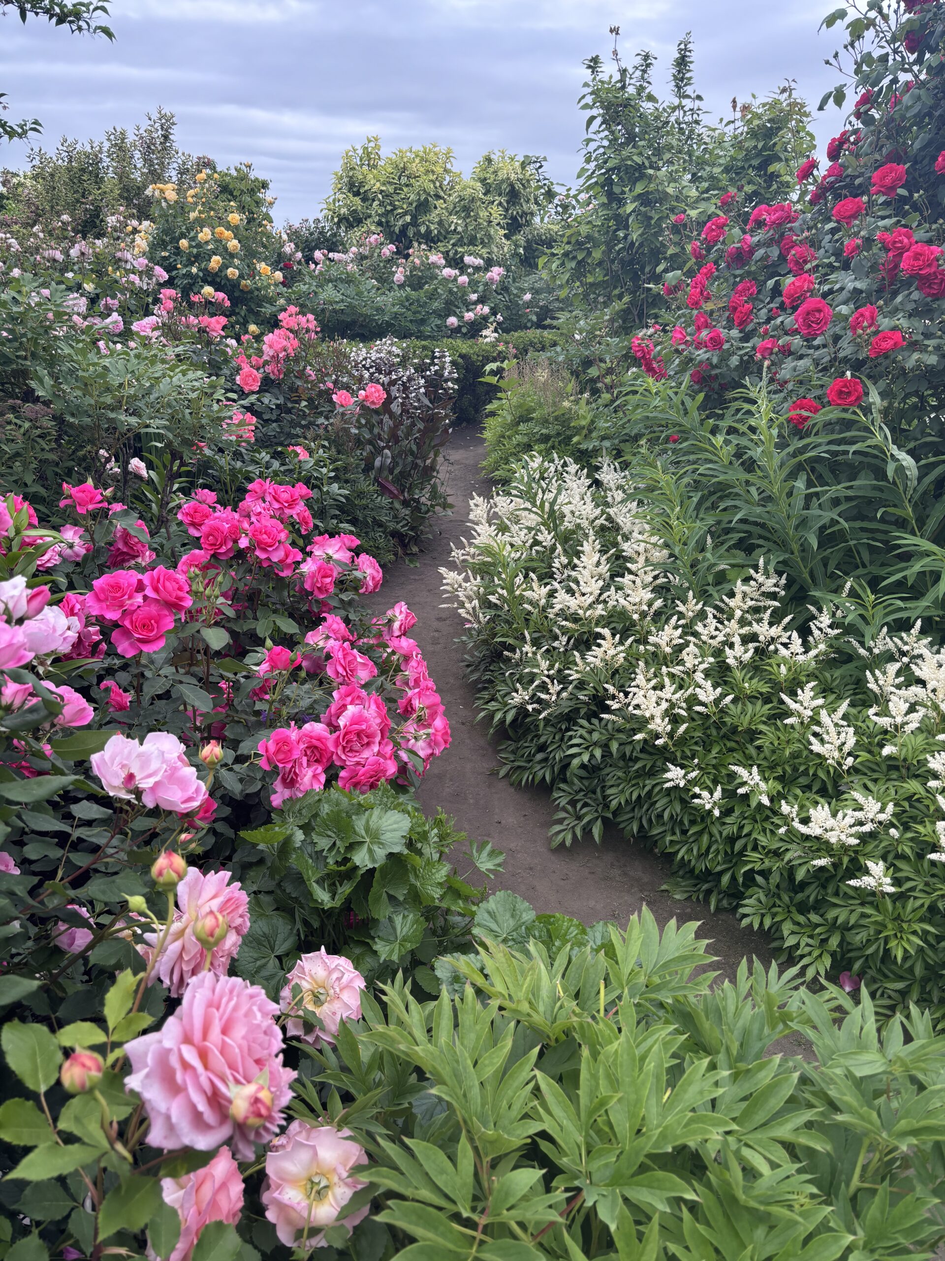 このバラは基本として早咲きなんです。だから庭がバラ期直前の静寂に包まれた緑の中で色鮮やかに咲き初める。