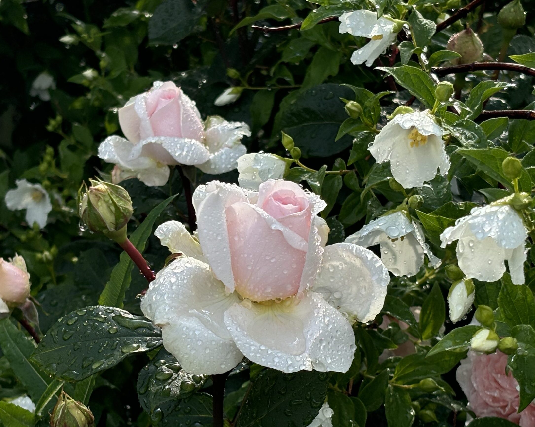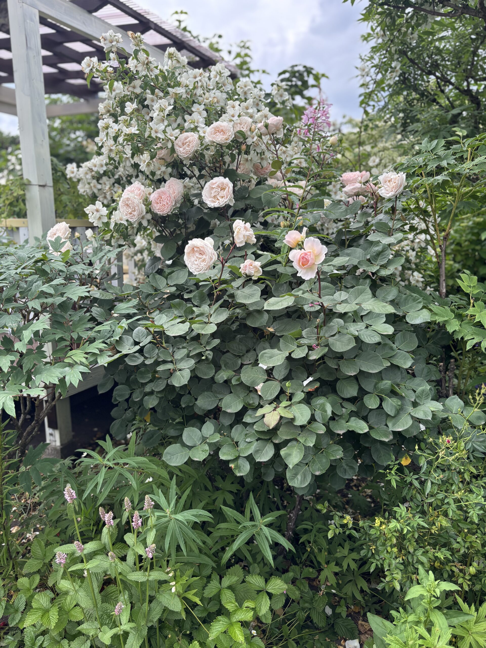 とりあえず花容はイングリッシュローズ風のアンティークタッチで、そこはかとなくメルヘンチックなのはコルデス然(もはや日本語としてどうなの…) ⇧⇩背後は梅花ウツギのベルエトワール