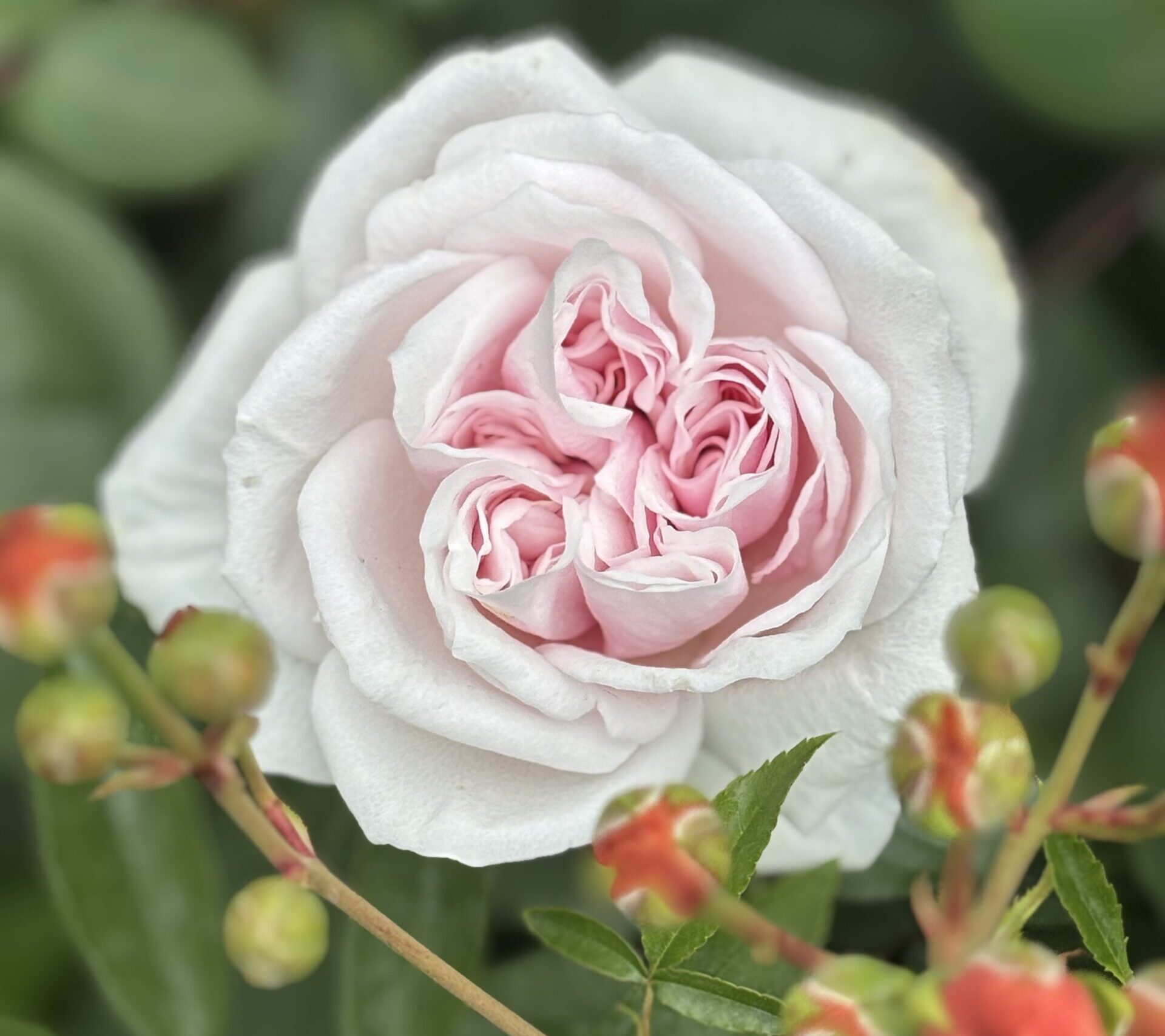 ただ確かに改めてこーしてみると、オールドローズファンにとってはマストアイテムだろうことが頷けます。パウダリーピンクの花色と素晴らしいクオーターロゼットの花容。しかも上質なコスメをイメージさせるダマスクとティーの香り。枝振りは横張気味なもののコンパクトなブッシュ樹形で樹勢もそこそこ。但し・・・・