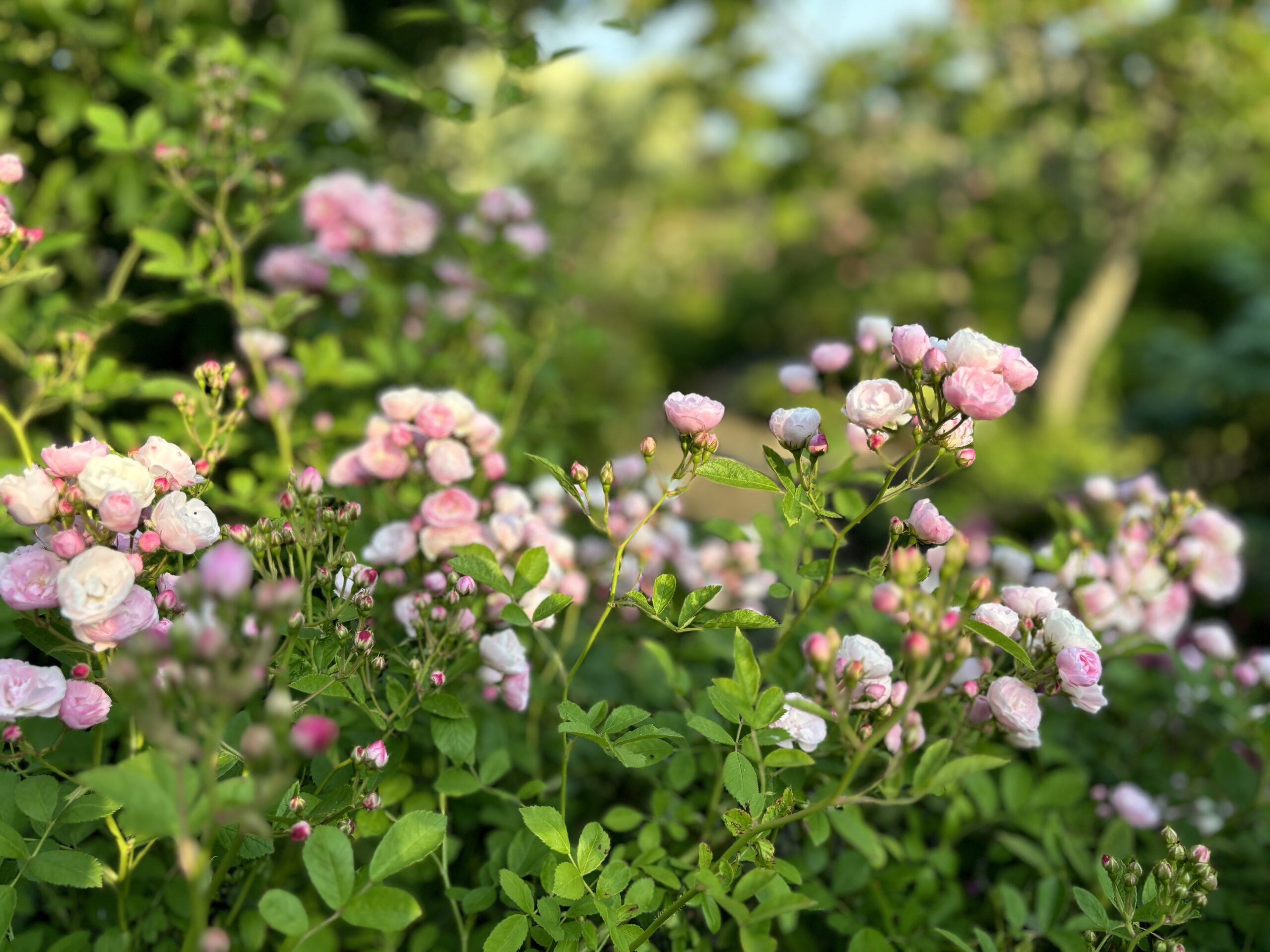 棘ナシノイバラの子品種って折り紙通り、強健、美しい樹姿、可愛らしい花房、そして庭のドコに咲いてても必ず調和してくれる気立ての良さ(#^^#) やっぱこういうのが結局一番有難い♪